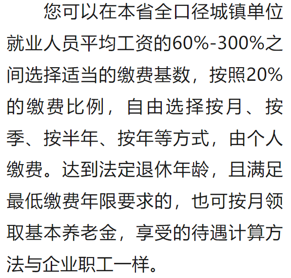 情況三:制度實(shí)施時,您距60周歲的規(guī)定領(lǐng)取年齡超過15年,應(yīng)按年繳費(fèi),累計繳費(fèi)不少于15年才能領(lǐng)養(yǎng)老金。